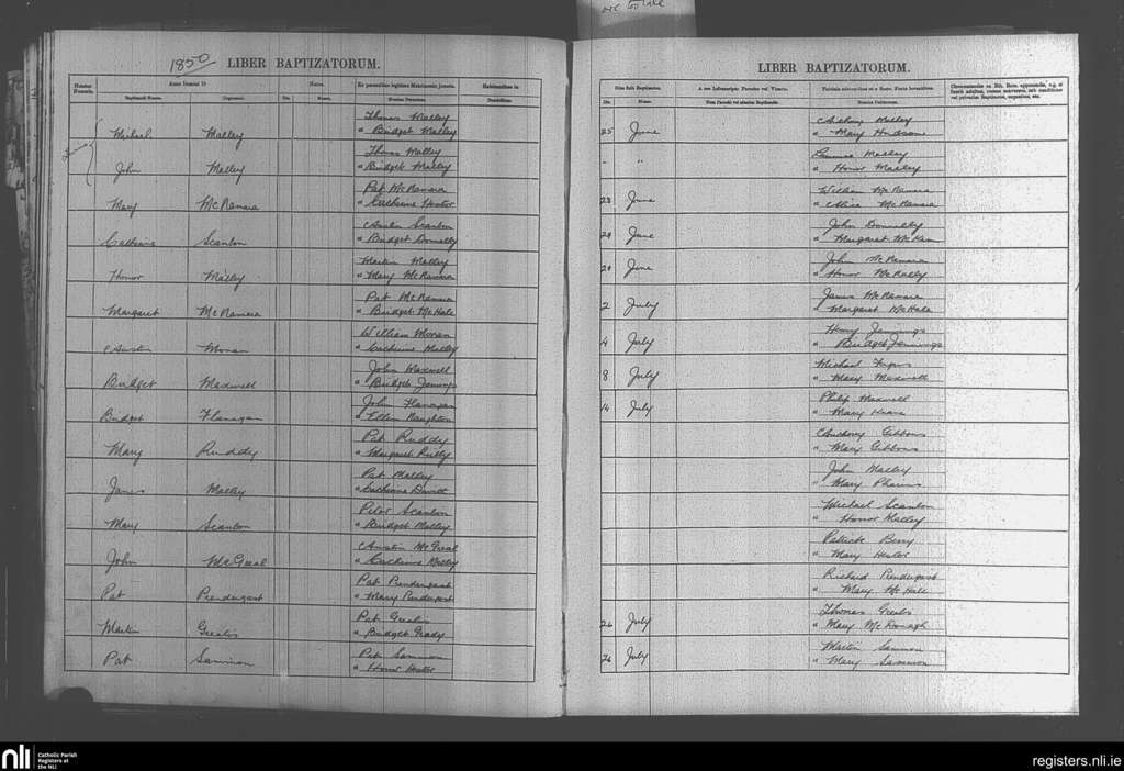 Kilgeever; County of Mayo; Archdiocese of Tuam. Baptisms, June 1850 to July 1850