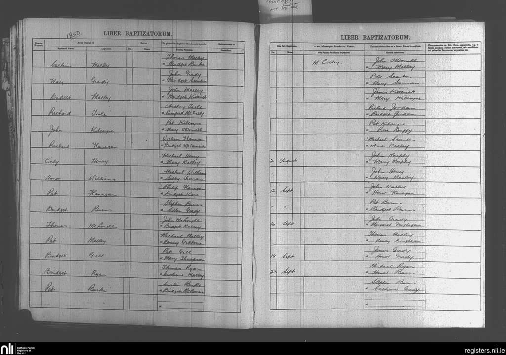 Kilgeever; County of Mayo; Archdiocese of Tuam. Baptisms, July 1850 to Sep. 1850