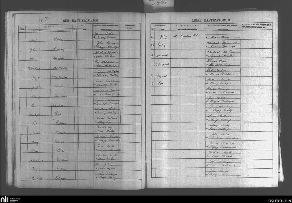 Kilgeever; County of Mayo; Archdiocese of Tuam. Baptisms, July 1852 to Sep. 1852