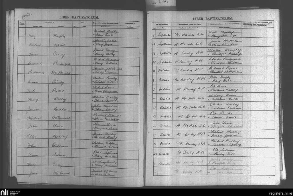Kilgeever; County of Mayo; Archdiocese of Tuam. Baptisms, Sep. 1853 to Dec. 1853