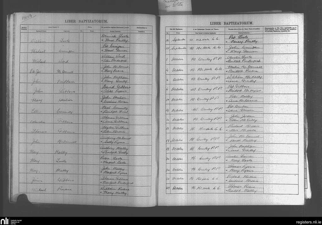 Kilgeever; County of Mayo; Archdiocese of Tuam. Baptisms, Sep. 1854 to Oct. 1854