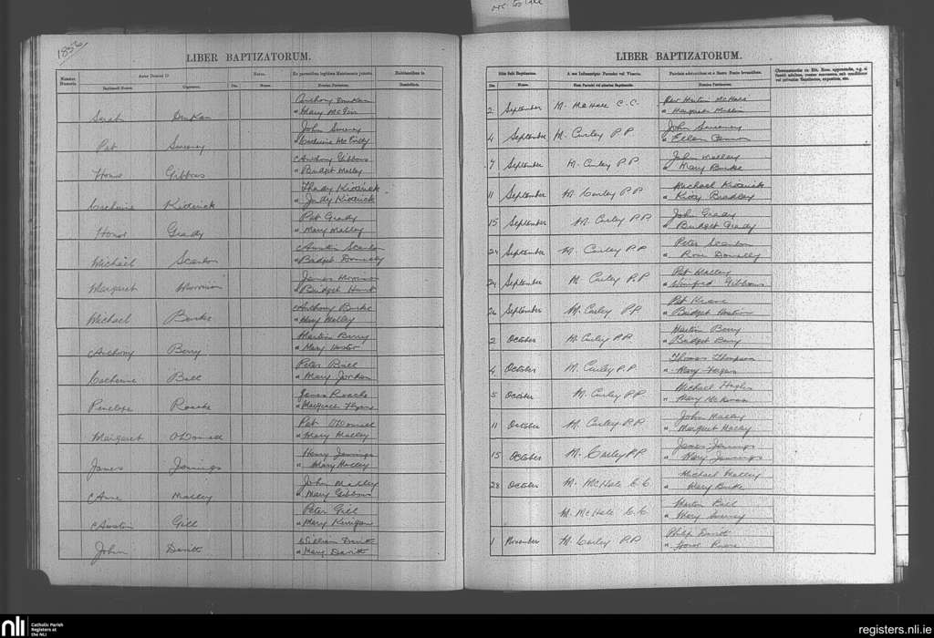 Kilgeever; County of Mayo; Archdiocese of Tuam. Baptisms, Sep. 1856 to Nov. 1856
