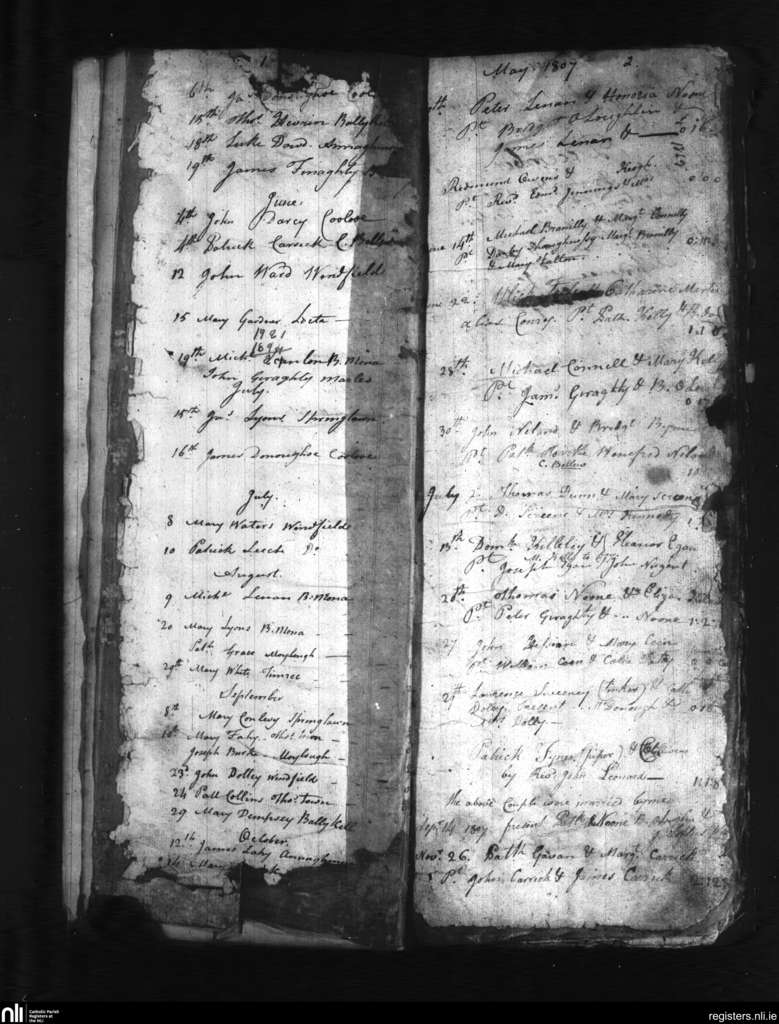 KIllascobe; County of Galway; Archdiocese of Tuam. Baptisms, Marriages, May 1807 to Nov. 1807