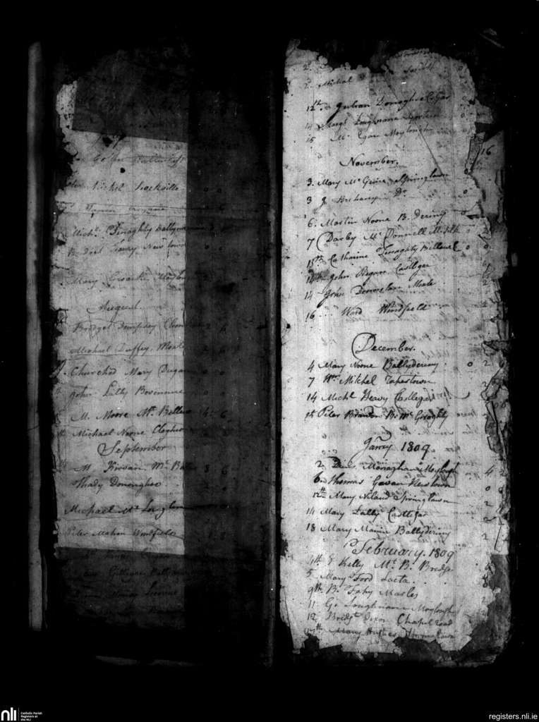 KIllascobe; County of Galway; Archdiocese of Tuam. Baptisms, June 1808 to Feb. 1809