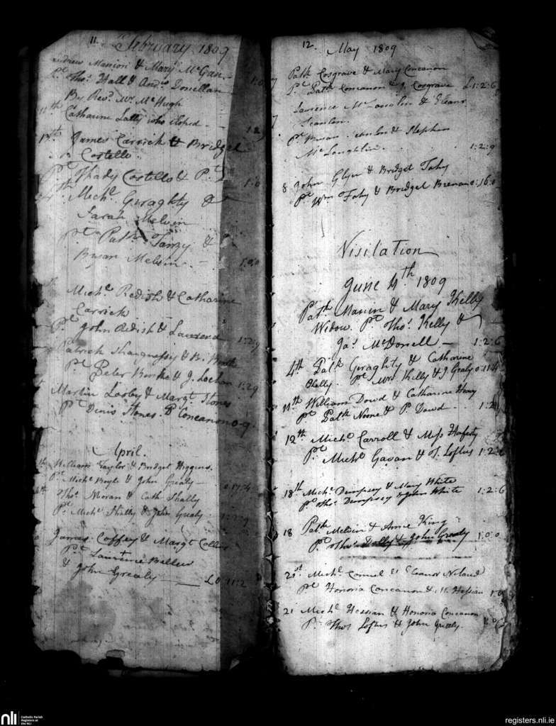 KIllascobe; County of Galway; Archdiocese of Tuam. Marriages, Feb. 1809 to June 1809