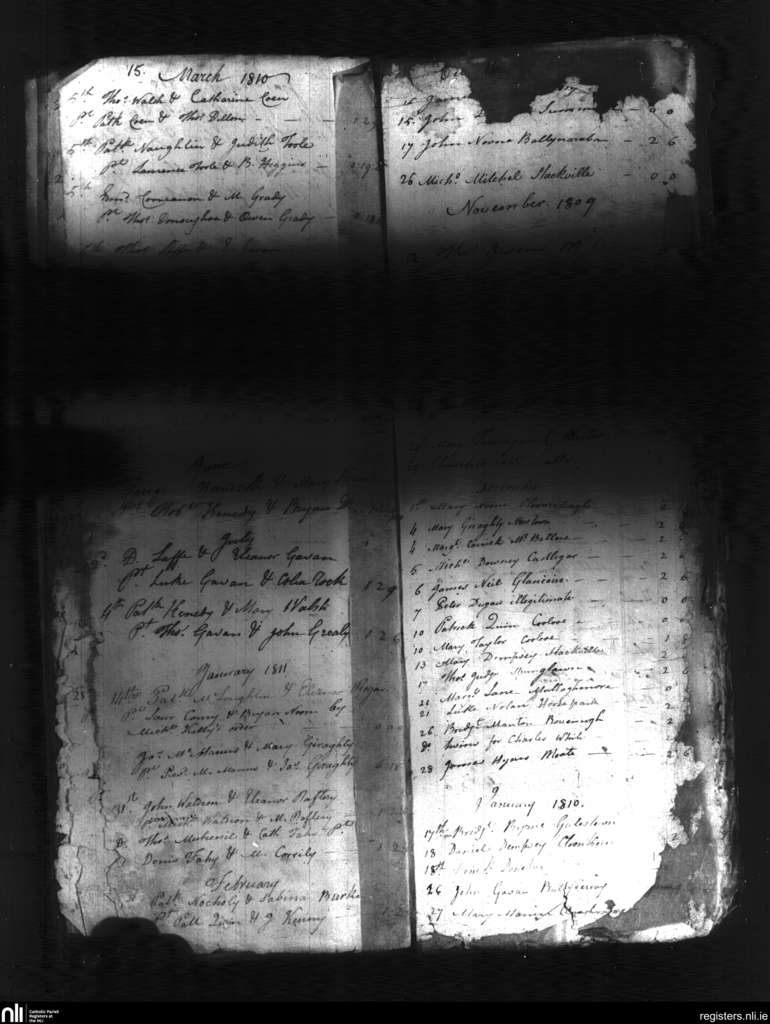 KIllascobe; County of Galway; Archdiocese of Tuam. Marriages, Baptisms, Oct. 1809 to Feb. 1811