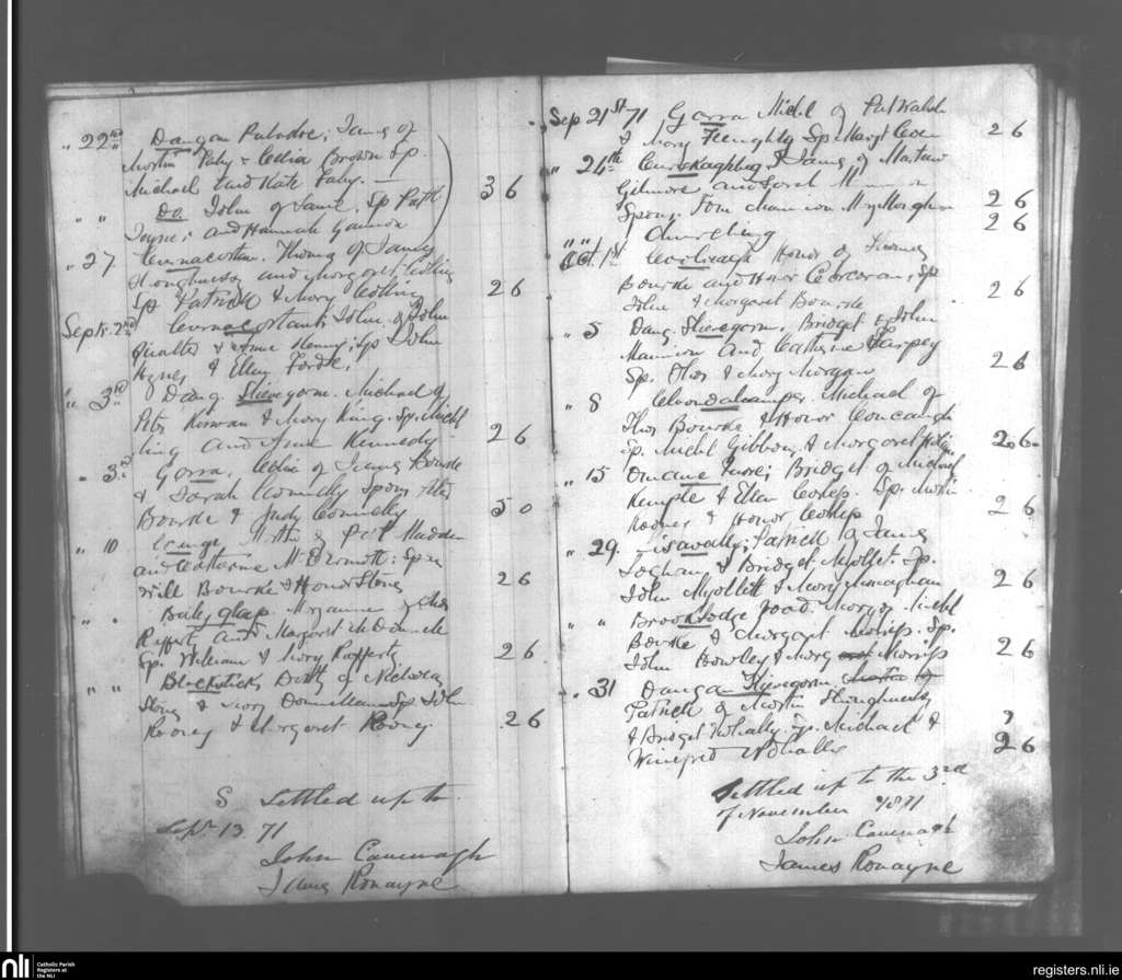 Killereran; County of Galway; Archdiocese of Tuam. Baptisms, Aug. 1871 to Oct. 1871