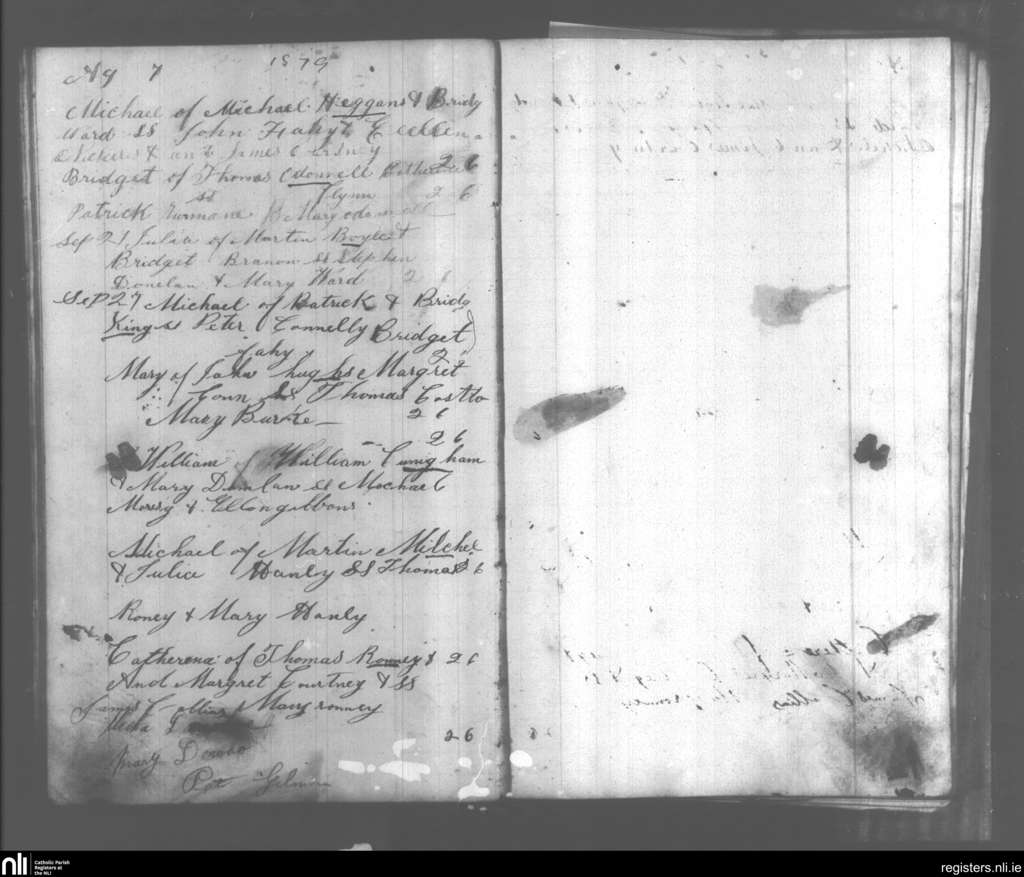 Killereran; County of Galway; Archdiocese of Tuam. Baptisms, Aug. 1879 to Sep. 1879