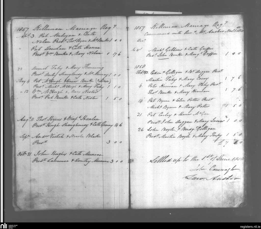 Killereran; County of Galway; Archdiocese of Tuam. Marriages, Apr. 1857 to Feb. 1858