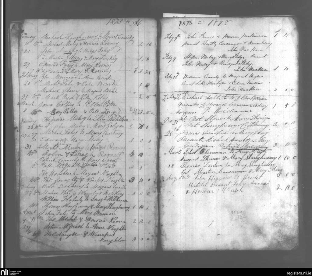 Killereran; County of Galway; Archdiocese of Tuam. Marriages, Jan. 1875 to Aug. 1878