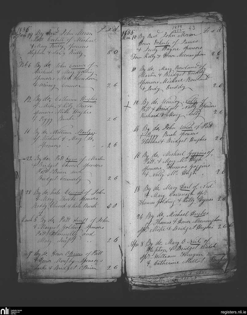 Kilmaine; County of Mayo; Archdiocese of Tuam. Baptisms, Jan. 1855 to Apr. 1855