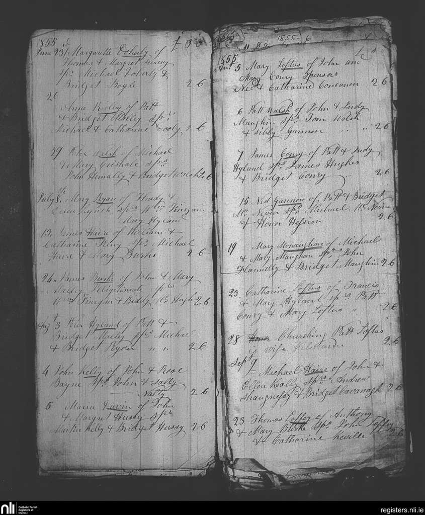 Kilmaine; County of Mayo; Archdiocese of Tuam. Baptisms, June 1855 to Sep. 1855