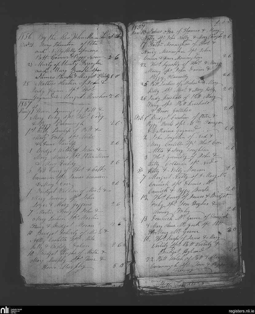 Kilmaine; County of Mayo; Archdiocese of Tuam. Baptisms, Dec. 1856 to Feb. 1857