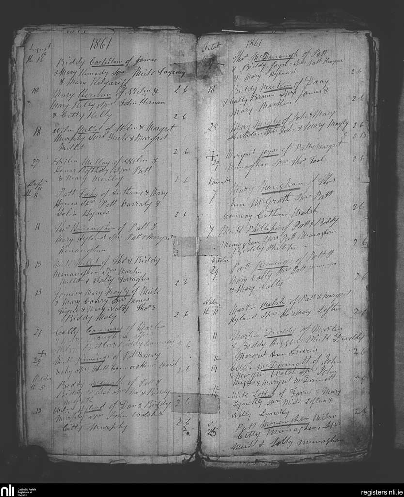 Kilmaine; County of Mayo; Archdiocese of Tuam. Baptisms, Aug. 1861 to Nov. 1861