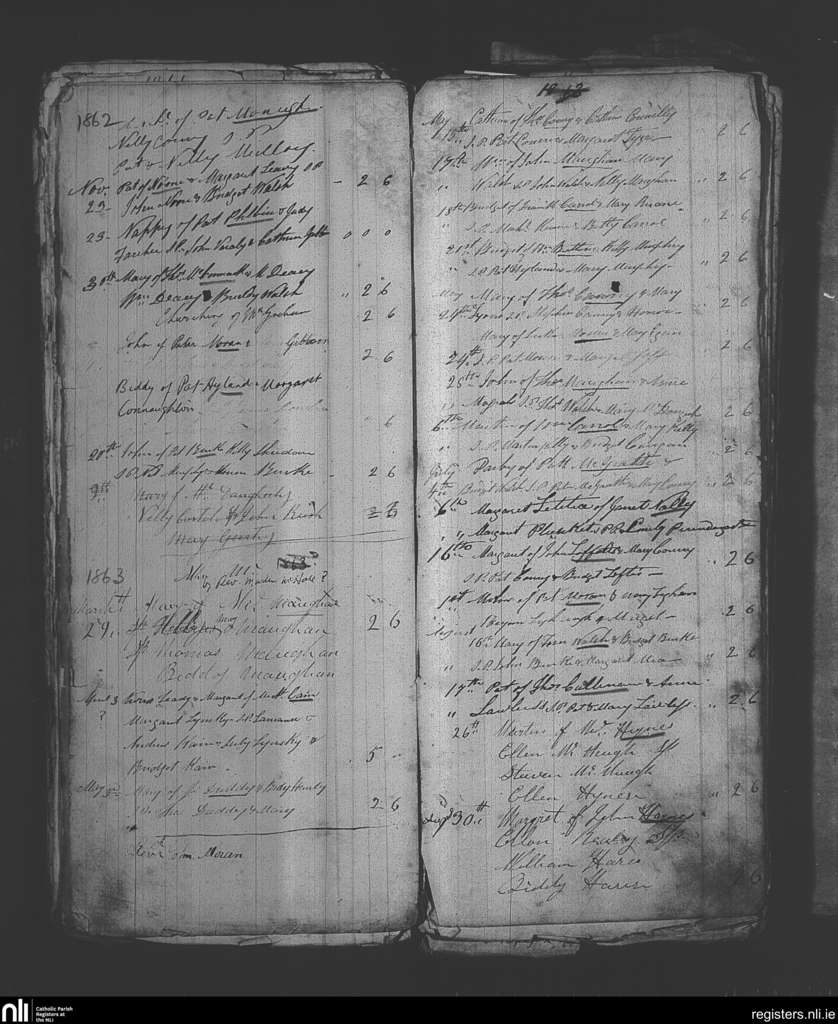 Kilmaine; County of Mayo; Archdiocese of Tuam. Baptisms, Nov. 1862 to Aug. 1863
