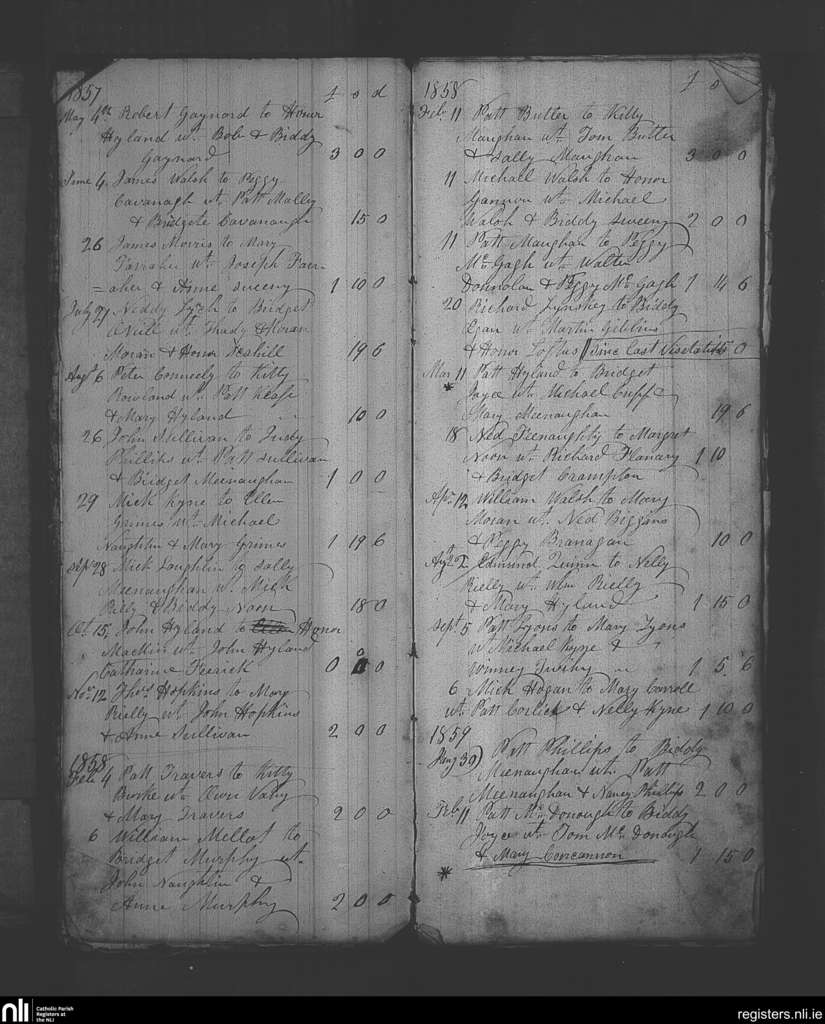 Kilmaine; County of Mayo; Archdiocese of Tuam. Marriages, May 1857 to Feb. 1859