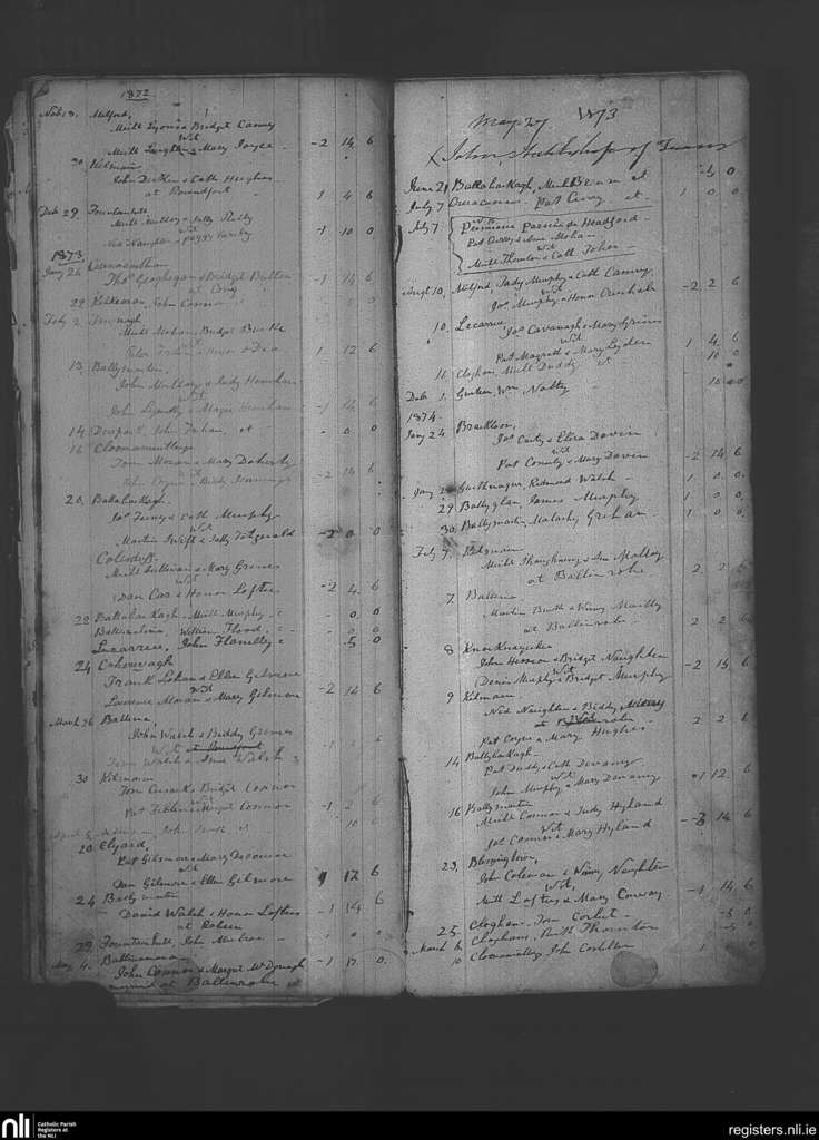 Kilmaine; County of Mayo; Archdiocese of Tuam. Marriages, Nov. 1872 to Mar. 1874