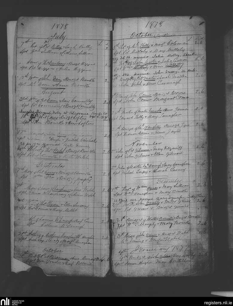 Kilmaine; County of Mayo; Archdiocese of Tuam. Baptisms, July 1878 to Jan. 1879