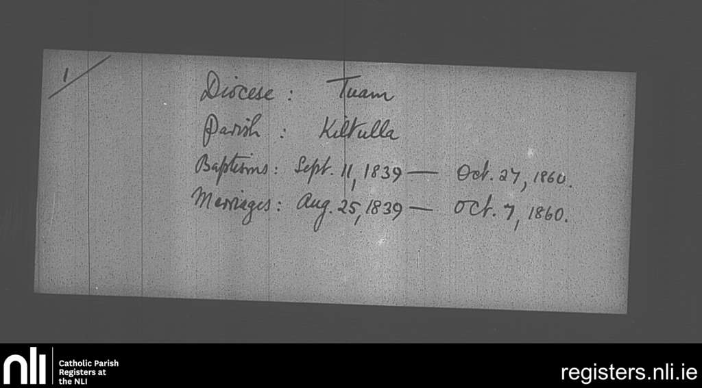 Kiltulla; County of Roscommon; Archdiocese of Tuam. Baptisms, Marriages