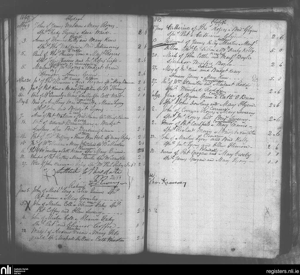 Kiltulla; County of Roscommon; Archdiocese of Tuam. Baptisms, Apr. 1843 to July 1843