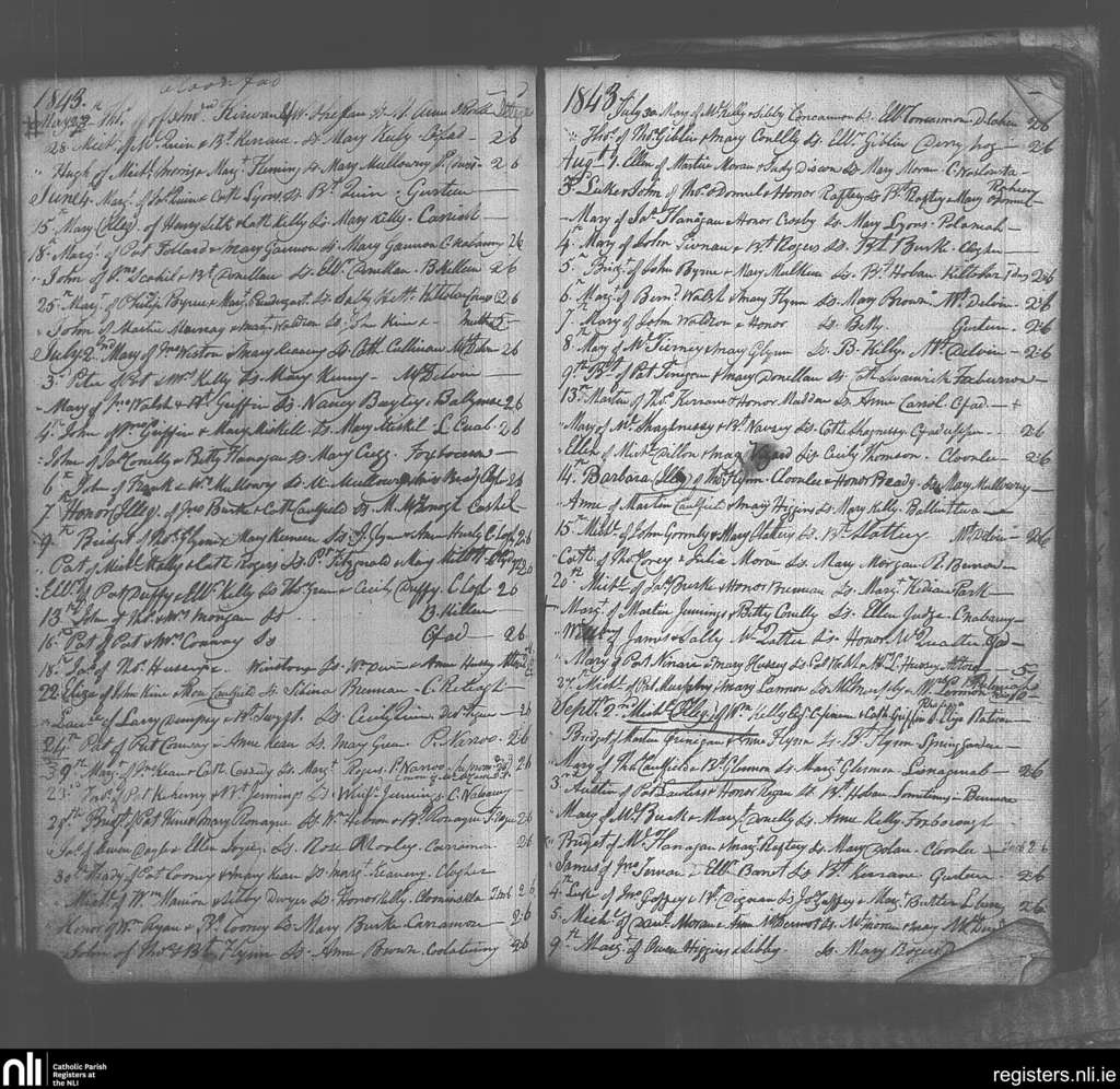 Kiltulla; County of Roscommon; Archdiocese of Tuam. Baptisms, May 1843 to Sep. 1843