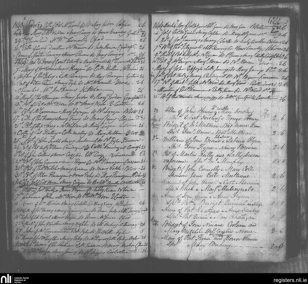 Kiltulla; County of Roscommon; Archdiocese of Tuam. Baptisms, Dec. 1843 to May 1844
