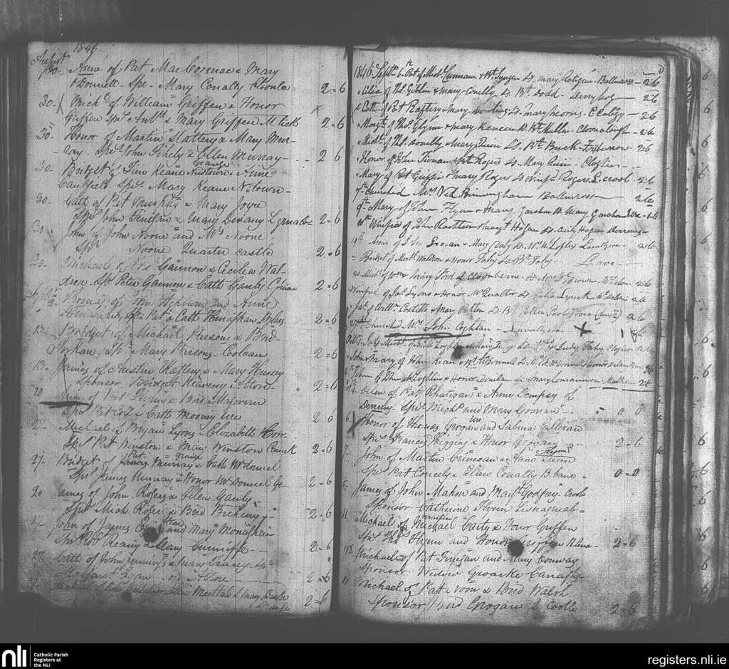 Kiltulla; County of Roscommon; Archdiocese of Tuam. Baptisms, Aug. 1846 to Oct. 1846