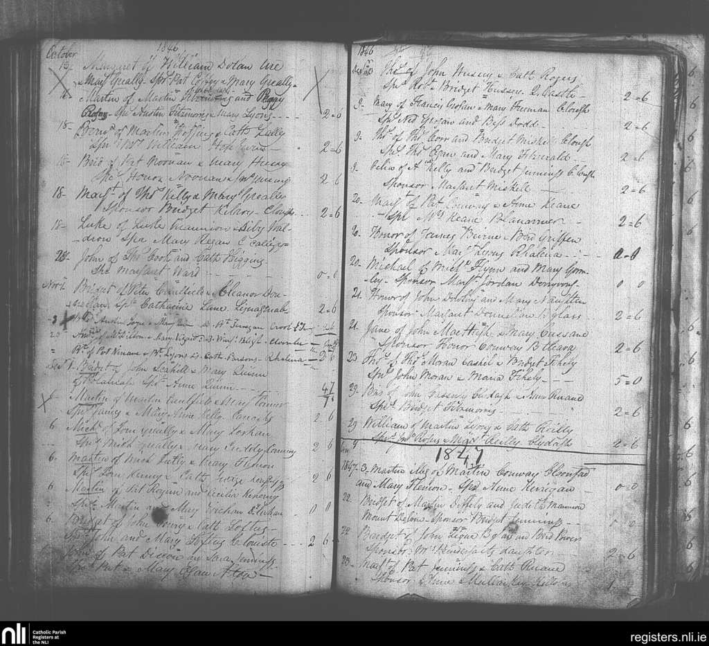 Kiltulla; County of Roscommon; Archdiocese of Tuam. Baptisms, Oct. 1846 to Jan. 1847