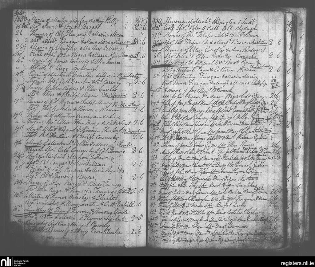 Kiltulla; County of Roscommon; Archdiocese of Tuam. Baptisms, Oct. 1850 to Aug. 1851