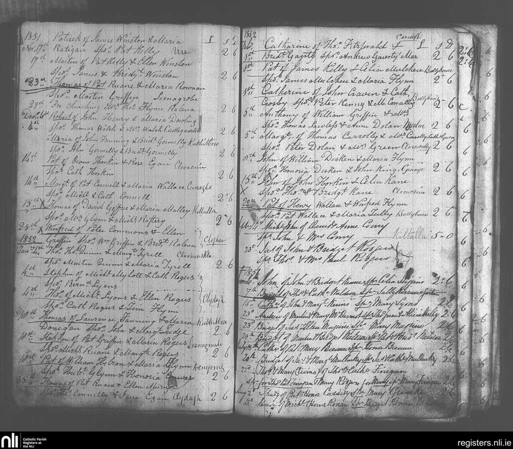 Kiltulla; County of Roscommon; Archdiocese of Tuam. Baptisms, June 1851 to Sep. 1852