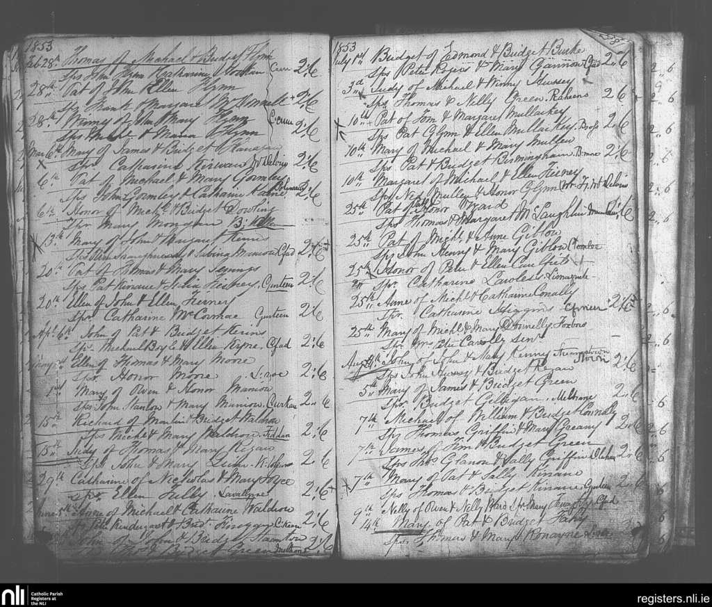 Kiltulla; County of Roscommon; Archdiocese of Tuam. Baptisms, Feb. 1853 to Aug. 1853