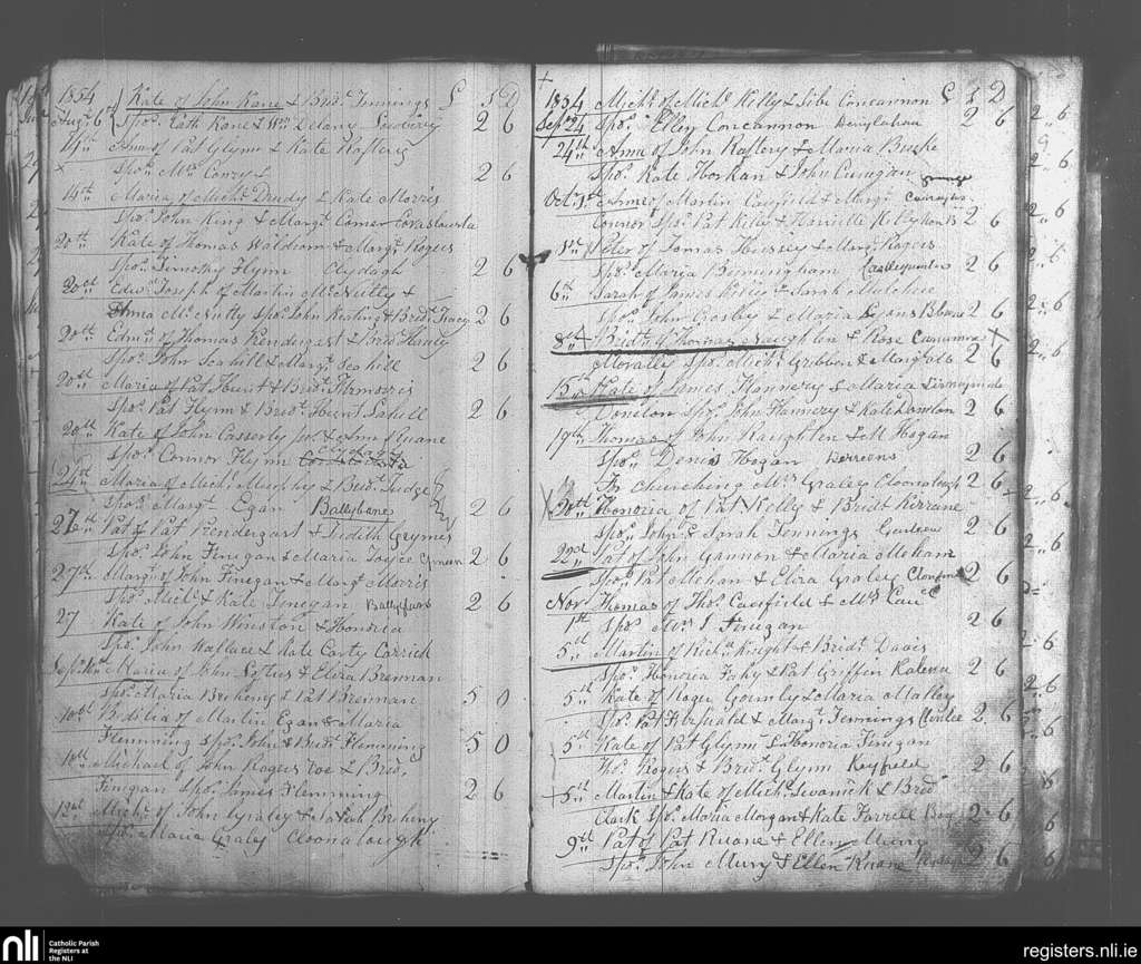 Kiltulla; County of Roscommon; Archdiocese of Tuam. Baptisms, Aug. 1854 to Nov. 1854