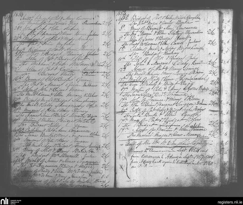 Kiltulla; County of Roscommon; Archdiocese of Tuam. Baptisms, June 1854 to Sep. 1854
