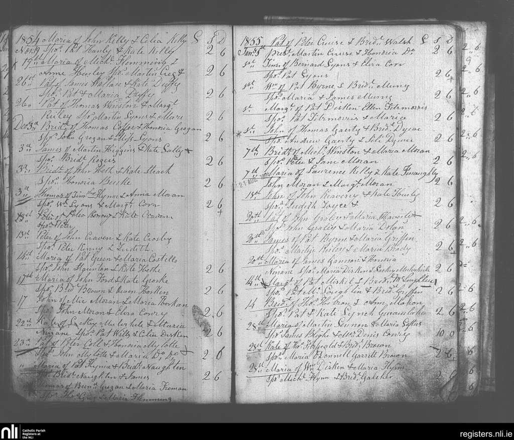 Kiltulla; County of Roscommon; Archdiocese of Tuam. Baptisms, Nov. 1854 to Jan. 1855