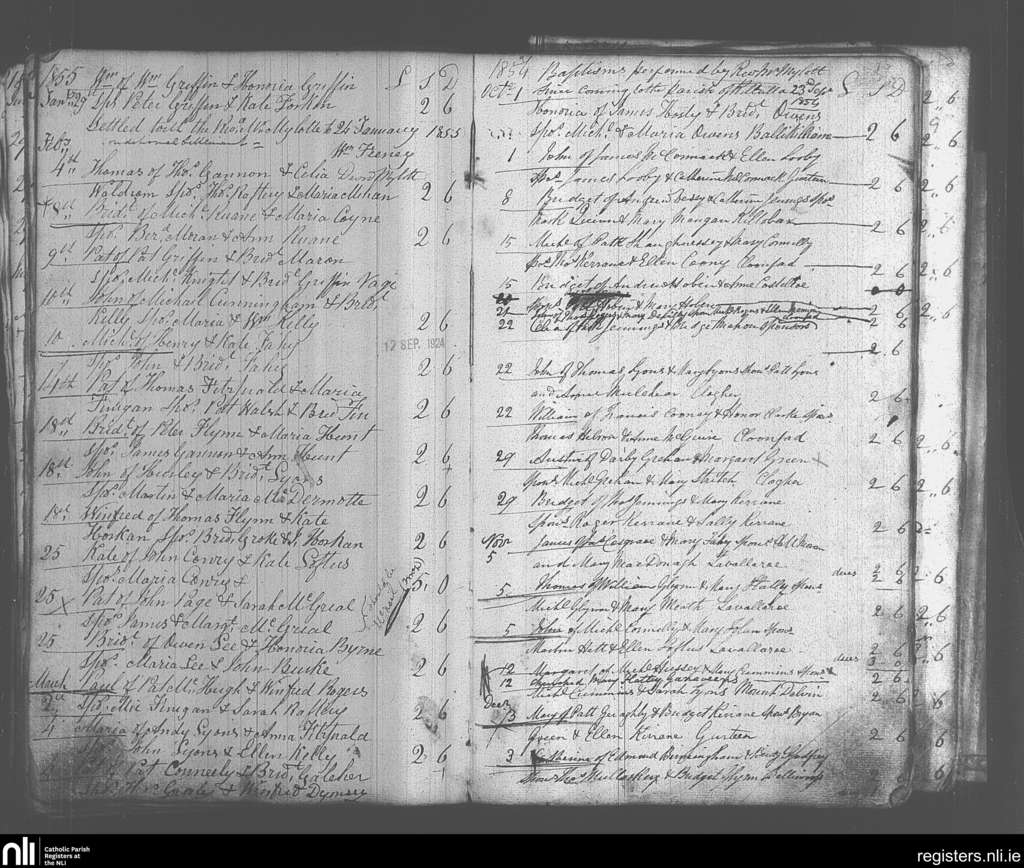 Kiltulla; County of Roscommon; Archdiocese of Tuam. Baptisms, Oct. 1854 to Mar. 1855