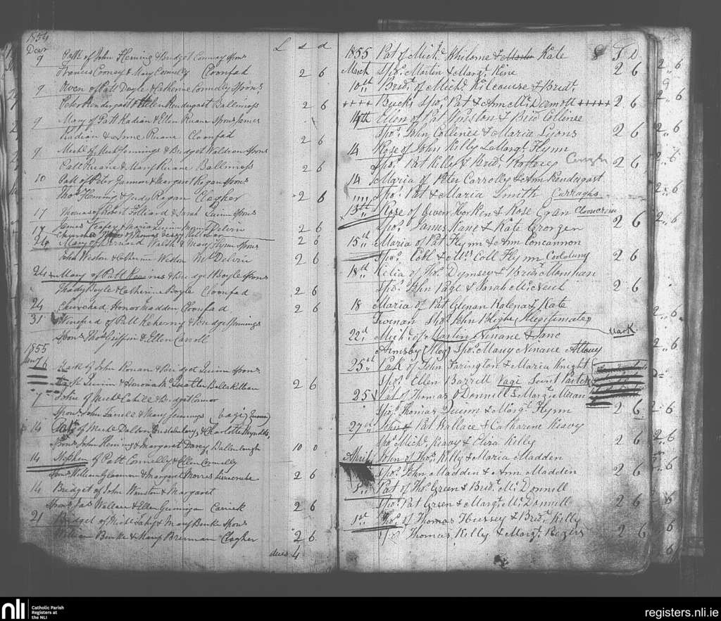 Kiltulla; County of Roscommon; Archdiocese of Tuam. Baptisms, Dec. 1854 to Apr. 1855