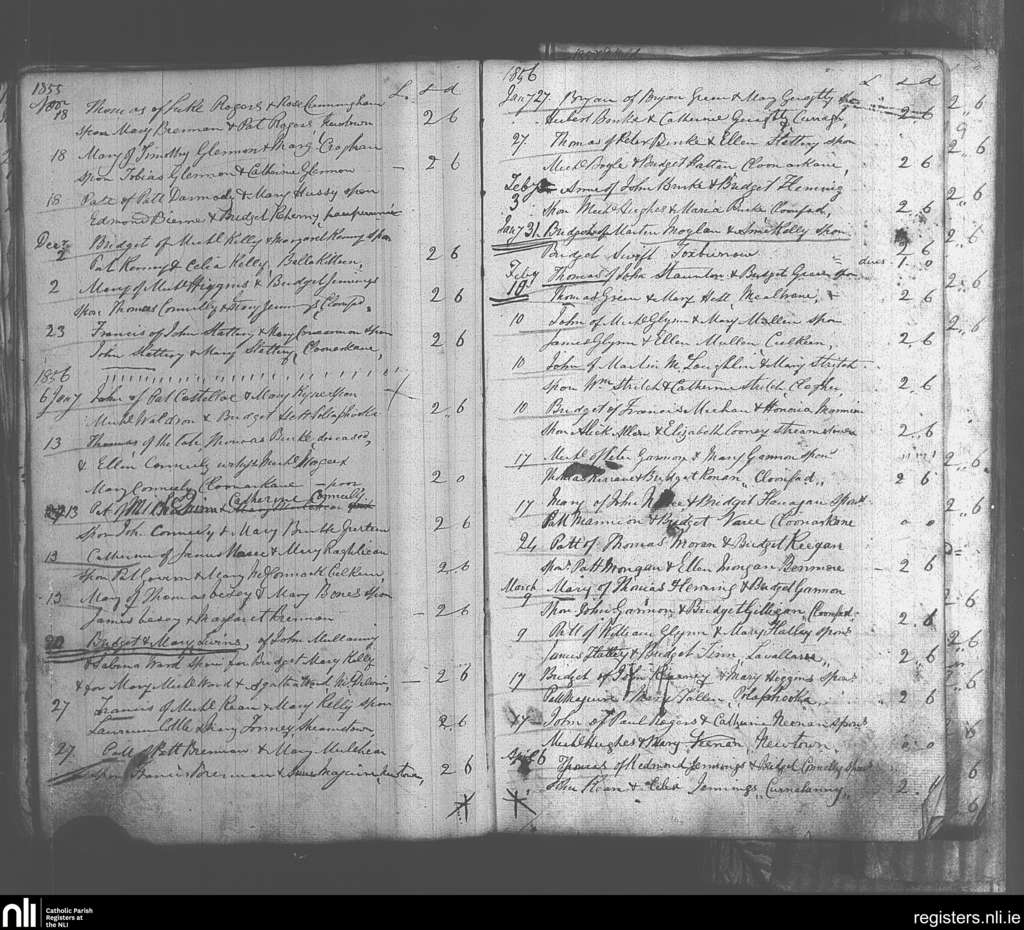 Kiltulla; County of Roscommon; Archdiocese of Tuam. Baptisms, Nov. 1855 to Apr. 1856