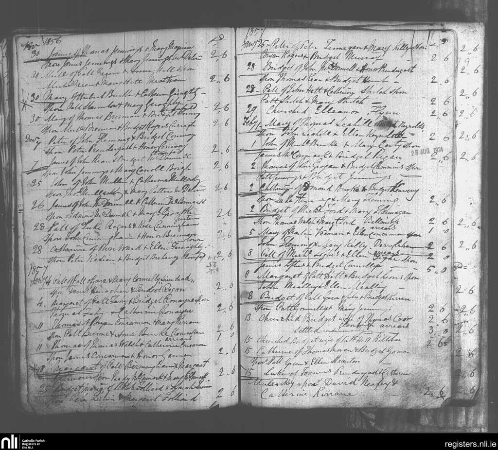 Kiltulla; County of Roscommon; Archdiocese of Tuam. Baptisms, Nov. 1856 to Feb. 1857