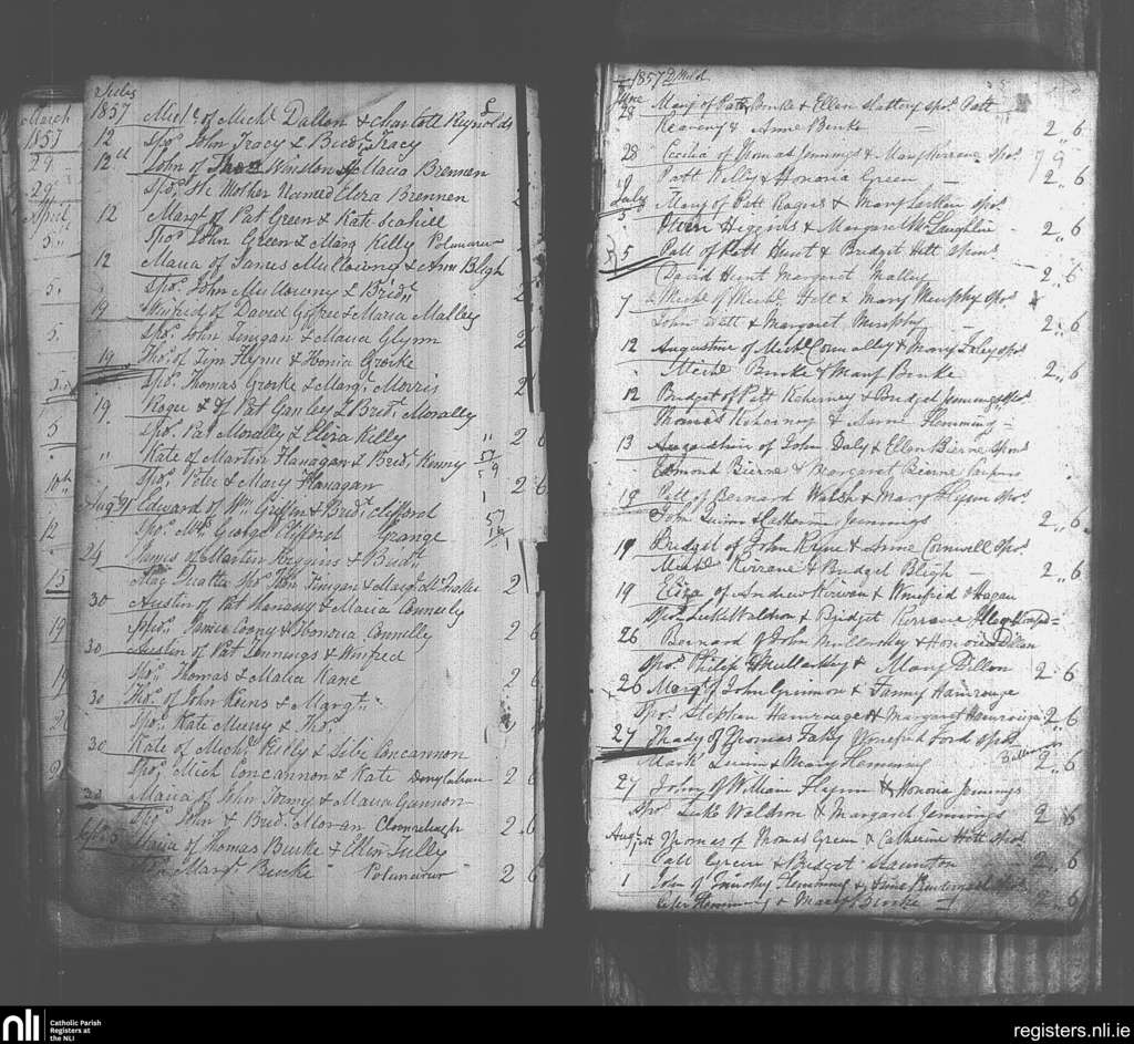 Kiltulla; County of Roscommon; Archdiocese of Tuam. Baptisms, June 1857 to Sep. 1857