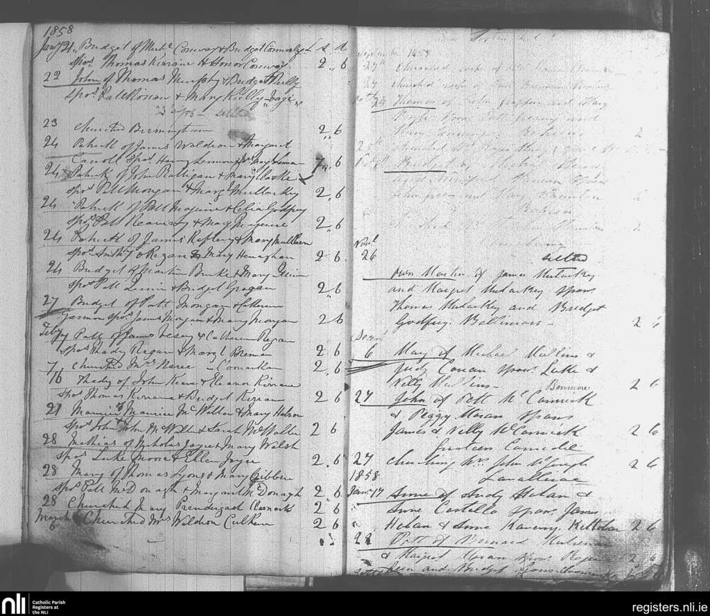 Kiltulla; County of Roscommon; Archdiocese of Tuam. Baptisms, Sep. 1857 to Mar. 1858
