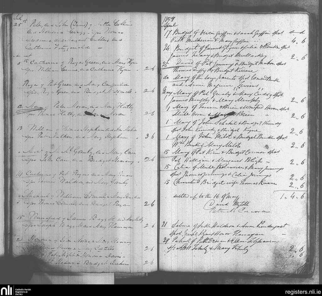 Kiltulla; County of Roscommon; Archdiocese of Tuam. Baptisms, Apr. 1859 to Aug. 1859