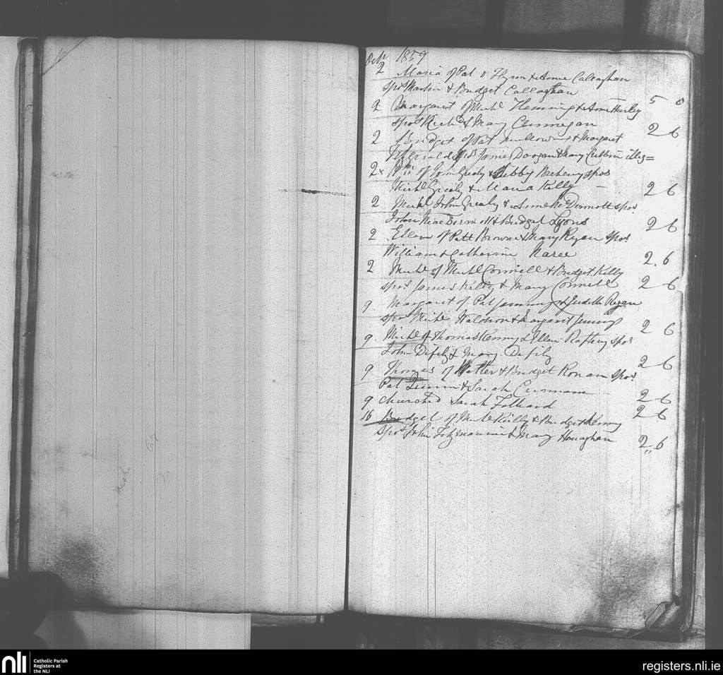 Kiltulla; County of Roscommon; Archdiocese of Tuam. Baptisms, Oct. 1859