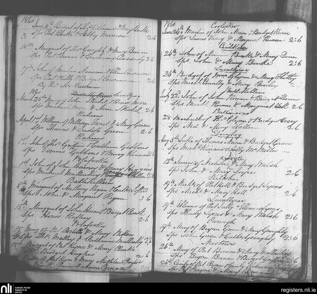 Kiltulla; County of Roscommon; Archdiocese of Tuam. Baptisms, Mar. 1860 to Aug. 1860