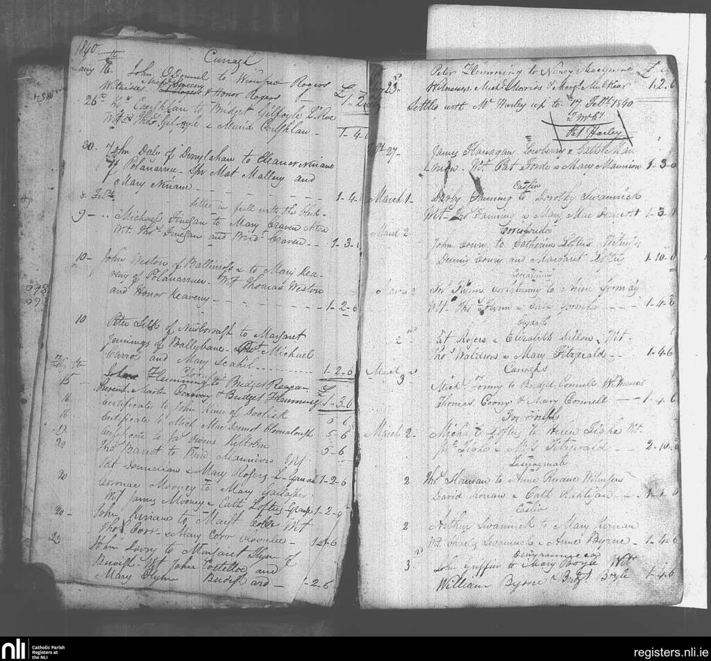 Kiltulla; County of Roscommon; Archdiocese of Tuam. Marriages, Jan. 1840 to Mar. 1840