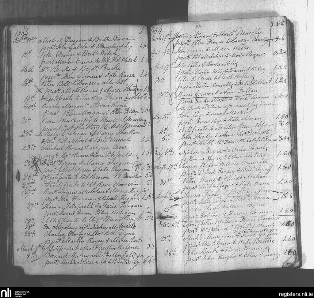 Kiltulla; County of Roscommon; Archdiocese of Tuam. Marriages, Feb. 1854 to Oct. 1854