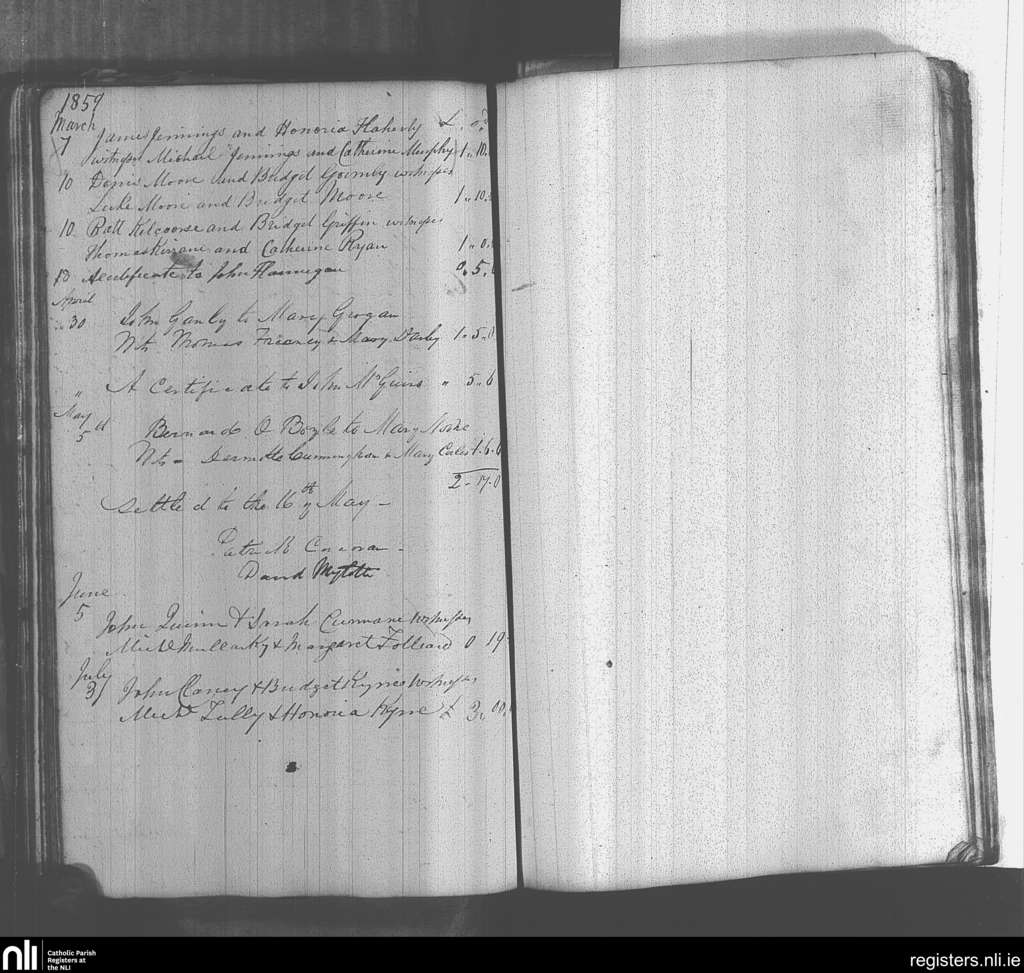 Kiltulla; County of Roscommon; Archdiocese of Tuam. Marriages, Mar. 1859 to July 1859
