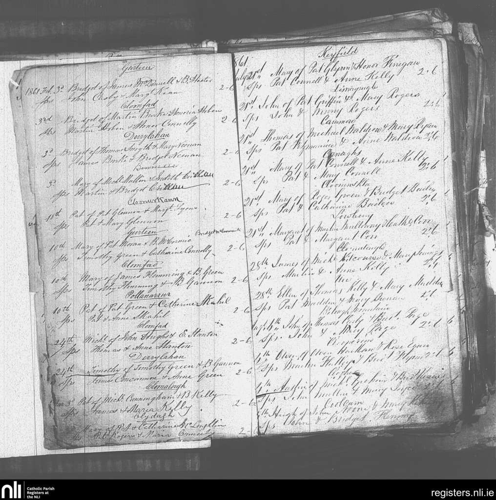 Kiltulla; County of Roscommon; Archdiocese of Tuam. Baptisms, Feb. 1861 to Aug. 1861