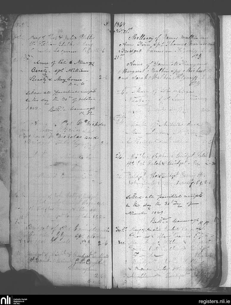 Knock; County of Mayo; Archdiocese of Tuam. Baptisms, Oct. 1869 to Dec. 1869