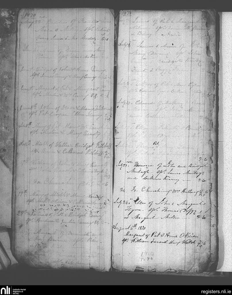 Knock; County of Mayo; Archdiocese of Tuam. Baptisms, May 1870 to Aug. 1870