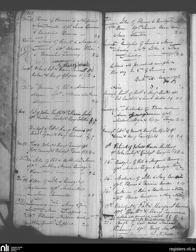 Knock; County of Mayo; Archdiocese of Tuam. Baptisms, Dec. 1870 to Jan. 1871